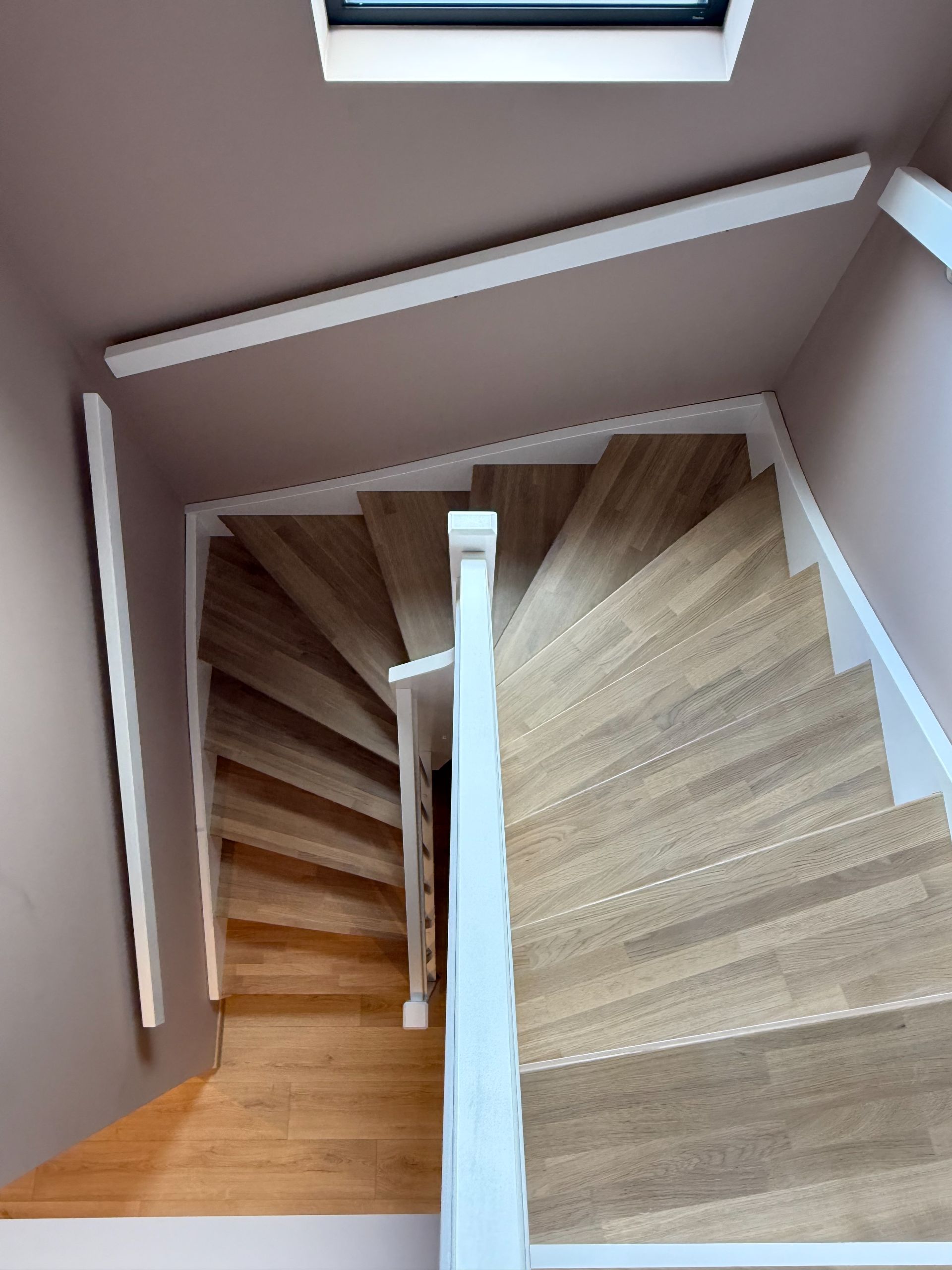 På bad i 2 etg., og vaskerom / bad i uetg er det flislagde gulv, med våtromsplater på vegg. På gulv i andre tørre rom er det montert 1-stavs parkett.